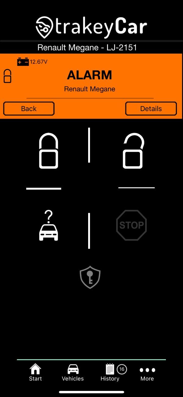 The alarm system is controlled using the vehicle’s original remote controls or the trakeyCar iOS/Android app.